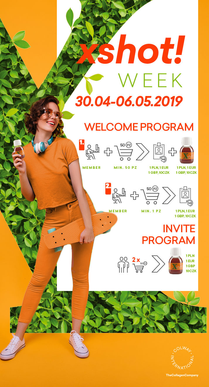 Połącz przyjemność z biznesem i dołącz do akcji rekrutacyjnej Xshot Week. Zamień pierwsze dni maja w wybuch wiosennej biznesowej energii! Od 30 kwietnia do 6 maja obowiązują programy Welcome & Invite. Mamy dla Ciebie dobry argument, żebyś nie przestawał mówić i myśleć o swoim biznesie. Podziel się nim z przyjaciółmi!